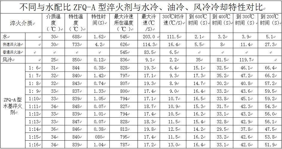 ZFQ-A型與水1:9配比時(shí)的冷卻性